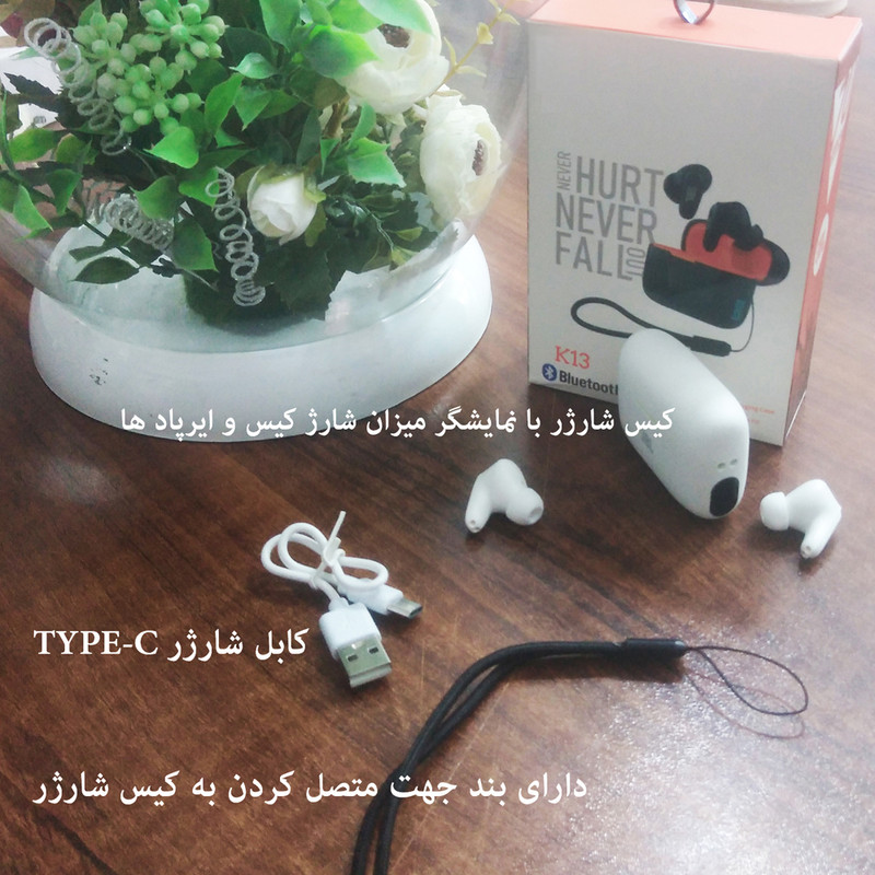 این هدفون جمع و جور و سبک در رده هدفونهای TWS قرار میگیرد که به صورت هر دو گوش مجزا قابل استفاده هستش و با شارژ کردن هر گوش به صورت فست شارژ میتوانید تا 5 ساعت پلی کنید . میکروفن در سری K13 تقویت شده هستش و به طور بی نقصی مکالمه هاتون رو حتی در شلوغ ترین جاها برقرار میکنه . پنل روی گوشی ها تاچ حساسی کار شده تا فقط با یه تاچ سطحی فرامیناتون رو برقرار کنید. طراحی کیس هدفون خیلی خوب کار شده و وزن مناسبی داره. پورت شارژ هم USB C کار شده تا فقط با 2 ساعت کل کیس و هدفون هارو فول شارژ داشته باشید ..کیس شارژر این دستگاه در کنار خود یک نمایشگر کوچ دارد که میزان درصد شارژ کیس و میزان شارژ ایرپاد ها را به صورت خط ستونی درخود نشان میدهد.استایل دم دار و میکروفن عالی این محصول باعث شده تا این مدل یه مدل پر فروش در رده های میان قیمت باشد.این ایرپاد قابلیت اتصال به تمام دستگاه ها اعم از گوشی های اپل و اندروید را داراست.داخل پک محصول یک بند هم جهت اتصال به کیس شارژر در نظر گرفته شده است.خروجی شارژر این محصول TYPE-C بوده و از این نظر نسبت به مدل های دیگر دسترسی به کابل شارژر سهل تر میباشد.کیس همراه این دستگاه بیشتر به عنوان رابطی برای شارژ ایرپادها میباشد و با هربار پر کردن کیس یک یا نهایتا دوبار امکان شارژ کردن ایرپاد ها فراهم هست.