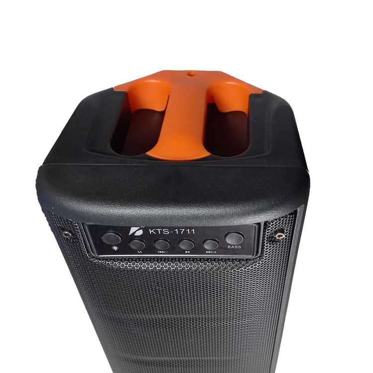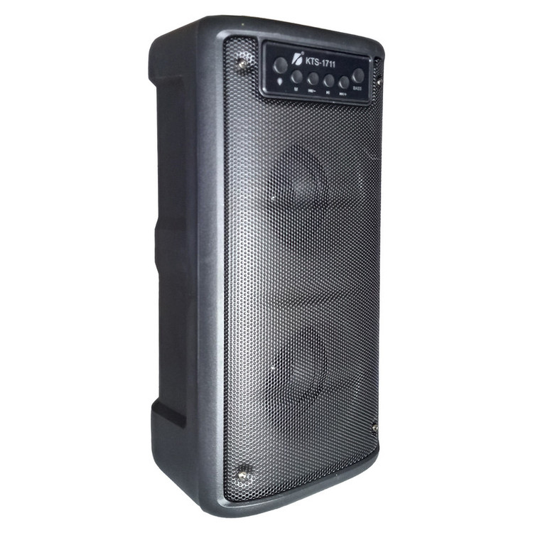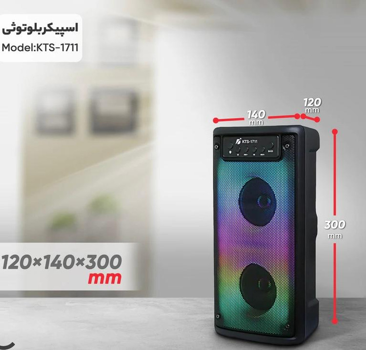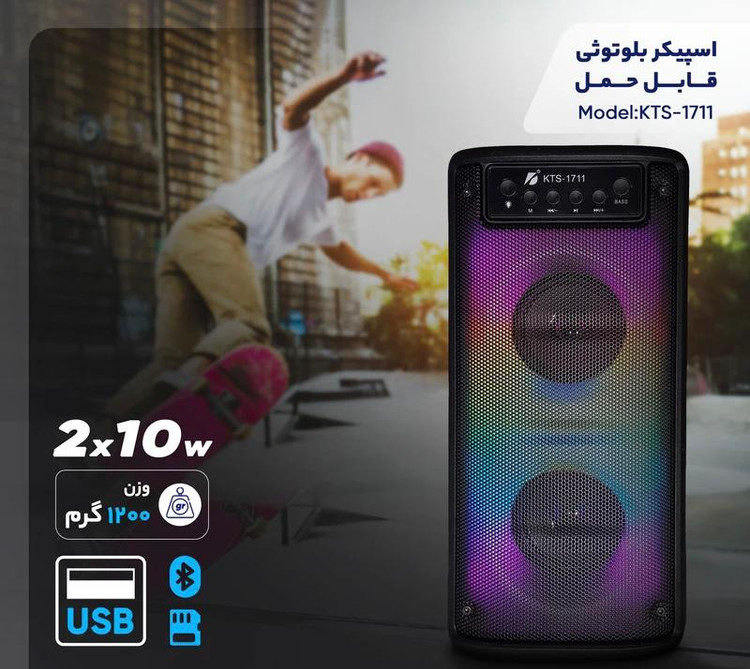 اسپیکر بلوتوثی قابل حمل مدل KTS-1711 یک گزینه جذاب و کارآمد برای دوستداران موسیقی است. این اسپیکر با ابعاد ۱۲۰x۱۴۰x۳۰۰ میلیمتر و وزن ۱۲۰۰ گرم، طراحی مناسبی برای حمل و استفاده در مکانهای مختلف دارد. یکی از ویژگیهای بارز این اسپیکر، امکان اتصال بیسیم و باسیم است که به راحتی میتوانید از طریق بلوتوث یا کابل AUX به آن متصل شوید. این مدل قابلیت پشتیبانی از کارتهای حافظه را دارد که امکان پخش موسیقی از حافظههای جانبی را فراهم میکند. همچنین دارای ورودی میکروفون است که این ویژگی آن را برای کارائوکه و تماسهای تلفنی مناسب میسازد. توان خروجی کلی اسپیکر KTS-1711 برابر با ۱۰Wx۲ وات است که صدایی با کیفیت و قدرت مناسب را ارائه میدهد. اقلام همراه این اسپیکر شامل کابل شارژ است و از نظر ارتباطی، دارای درگاه USB و شیار کارت حافظه میباشد. این اسپیکر همچنین دارای کنترلکننده بیس موسیقی و انتخاب چند حالت نور است که تجربه شنیداری و بصری لذتبخشی را برای کاربران فراهم میآورد. به طور کلی، KTS-1711 یک گزینه ایدهآل برای افرادی است که به دنبال یک اسپیکر قابل حمل با امکانات متنوع و کیفیت صدای خوب هستند.
